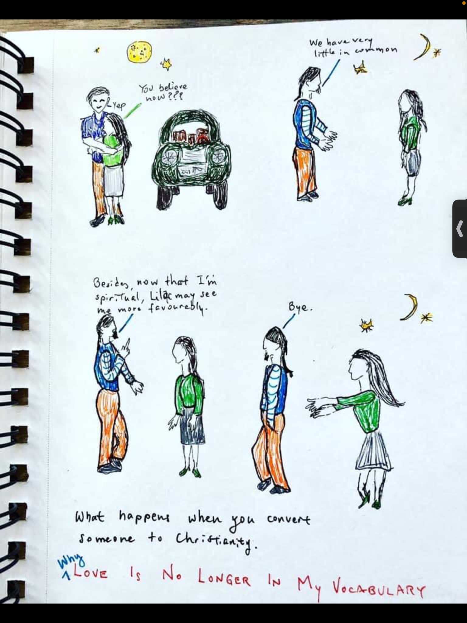 This is an symbolic depiction of what actually happened over 30 years ago, and I think about it everyday. Up until today, people in his present church as well as the small house church we used to go to still think “Lilac” brought him back to the fold because he insists his girlfriend at the time had, making it look like it was Lilac’s doing. Thanks, N. I hope you have a great life with a bad conscience and as unhappy a future as the past 30 years have granted me. Fuck you.